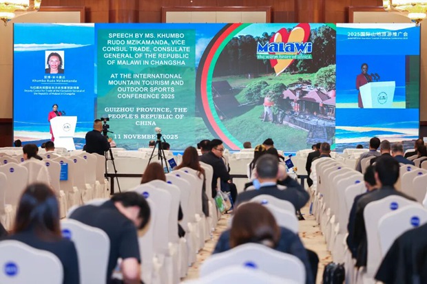Editor's Note: On November 11, the International Conference of Mountain Tourism and Outdoor Sports (MTOS) 2025 commenced in Guiyang City, Guizhou Province. With the continued theme "Integration of Culture, Tourism and Sports Presents a High Quality Life," this year's Conference featured a series of events including the International Mountain Tourism Alliance (IMTA) Annual Conference 2025, the International Mountain Tourism Promotion Conference 2025, a Field Trip to Guizhou Mountain Tourism Destinations, and the Bank of Guizhou·Mountain Culture, Tourism and Outdoor Sport Equipment Exhibition. Over 350 participants gathered, including representatives from international organizations, government and tourism departments of relevant countries, diplomatic missions in China, tourism-related enterprises, mountain tourism destination management agencies, experts, scholars, and media from more than 30 countries and regions. They explored new pathways for the integrated development of "Mountain Tourism +", shared new achievements in mountain tourism development, and worked together to build a prosperous new future for mountain tourism. Khumbo Rudo Mzikamanda, Vice Consul for Trade at the Consulate General of the Republic of Malawi in Changsha, made a presentation at the 2025 International Mountain Tourism Promotion Conference.