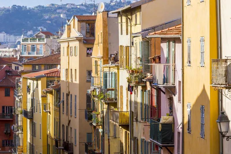 In the old town of Nice, the colorful Baroque-style walls show the unique beauty of the Mediterranean.