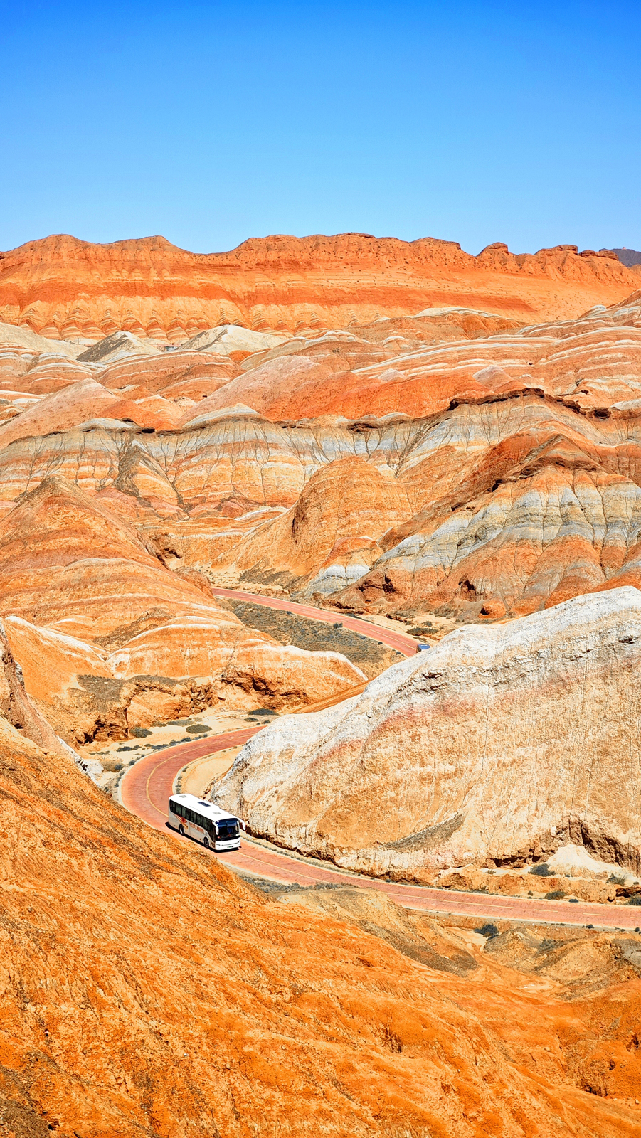 Renowned for its breathtaking and vibrant landscapes, the Danxia landform in Zhangye, Gansu Province, showcases a stunning array of red, yellow, and orange hues that resemble a natural artist's palette. Visitors to the Colorful Danxia Scenic Area of the Danxia National Geological Park can stroll along pathways leading to observation platforms, where they can take in the sweeping views of the colorful, rolling mountains. As a UNESCO Global Geopark, this remarkable site has become a must-visit destination for travelers seeking to experience its unique beauty.