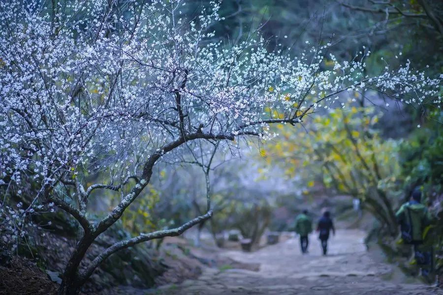 In winter, when the plum blossoms are in full bloom, the two sides of the ancient road become a sea of white flowers, with a sense of coldness and arrogance that is unique to plum blossoms. Walking on this ancient road, you can not only feel the temperature of history, but also have a romantic encounter with plum blossoms.