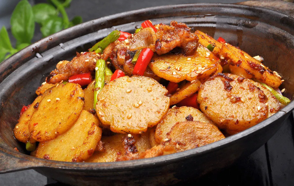 Potatoes are part of every meal for Guizhou locals. In the morning, shredded potatoes are added to sticky rice; at lunch, a hotpot meal isn’t complete without a plate of potatoes; for dinner, dry pot potato slices are a must; and even for late-night snacks, a few skewers of grilled potato slices or potatoes as a side dish for grilled fish are essential.