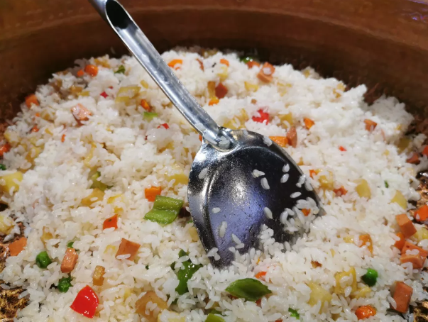 To make potato rice, partially cook the rice and set it aside. Peel and cube the potatoes, then stir-fry them in oil with a pinch of salt until golden. Add the partially cooked rice to the pot, spreading it evenly over the potatoes. Pour in an appropriate amount of water, cover the pot, and cook over high heat before reducing to low heat. The finished potato rice carries the savory taste of potatoes and the fragrant aroma of rice.