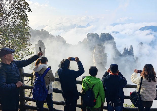A sea of clouds is seen at the Wulingyuan scenic area in Hunan Province on November 21, 2024. /CFP
