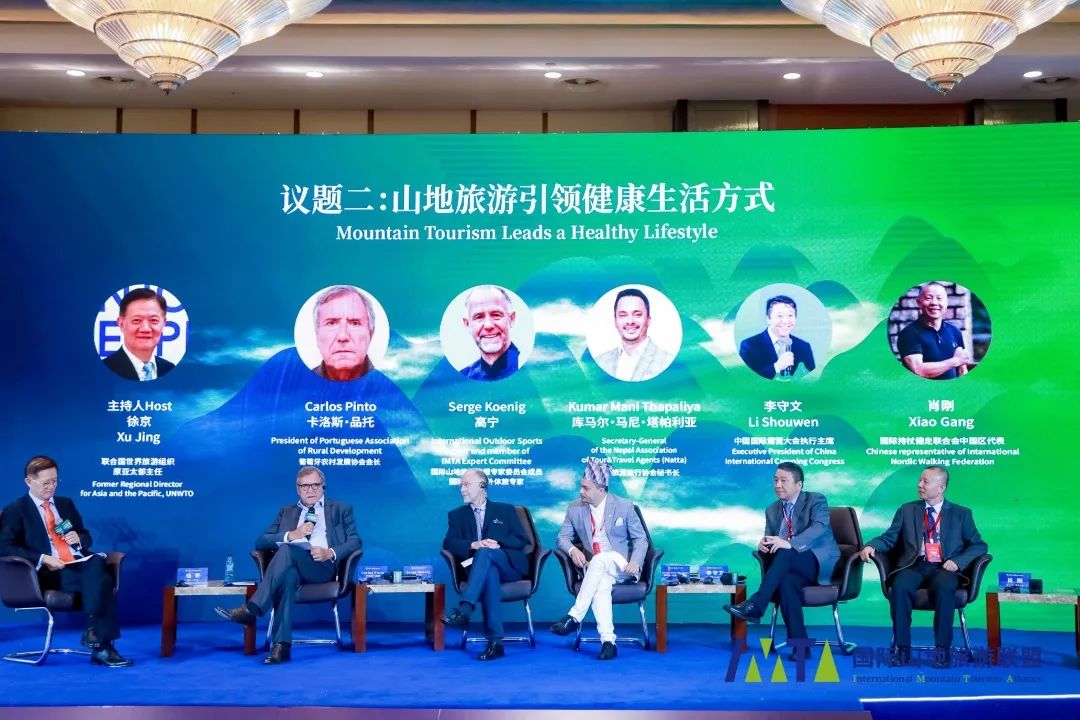 葡萄牙农村发展协会会长卡洛斯·品托(Carlos Pinto),国际山地旅游联盟专家委员会成员、国际知名户外体旅专家高宁(Serge Koenig),尼泊尔旅游旅行协会主席拉梅什·塔帕(Ramesh Thapa),中国国际露营大会执行主席李守文,国际持杖健走联合会中国区代表肖刚等嘉宾从不同专业角度围绕“山地旅游引领健康生活方式”议题开展对话,嘉宾们纷纷认为,山地对人们的健康生活有着与生俱来的领军者作用,我们应该利用新需求、新理念推动山地旅游与健康方式融合,为构建山地康养旅游提供积极正向的引导。