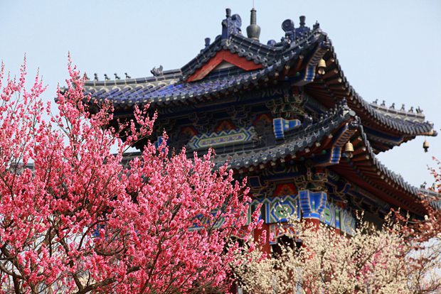In addition to the gorgeous pink pageant, in Xinghua Village, Zhengzhou, pearly white apricot blossoms are also in bud. The blooming period for apricot blossoms lasts around just three weeks, and March is generally considered as the best time to admire their beauty. Zhangye, however, which is located in the northwest of Gansu Province, will usher in large-scale apricot blossoms from April to early May due to its altitude and climate.