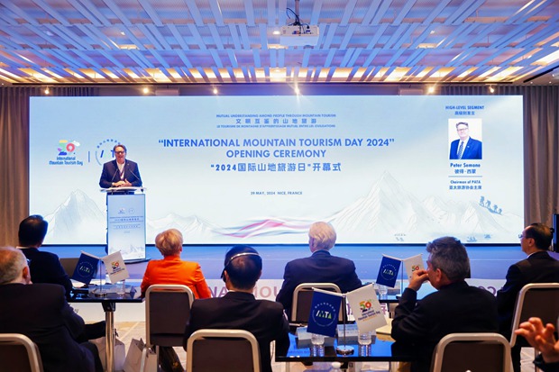 5月29日,2024“国际山地旅游日”主题活动在法国滨海阿尔卑斯省尼斯市成功举办。中国驻法国使领馆代表、法国文化旅游部门、地方政府代表、国际组织代表、国际山地旅游联盟会员代表、旅游机构、涉旅企业、业界专家、新闻媒体等共聚一堂,围绕“文明互鉴的山地旅游”大会主题和“气候变化与山地旅游应对之策”论坛主题展开研讨互动,传播文明互鉴的发展理念,推动“山地旅游+”模式的创新。
