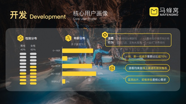 可以看看用户画像,年轻女性超过60%,亲子家庭占比也很高,寓教于乐。客源地70%都来自一线、新一线城市,消费能力强,一家人来贵州,就想玩点不一样的。