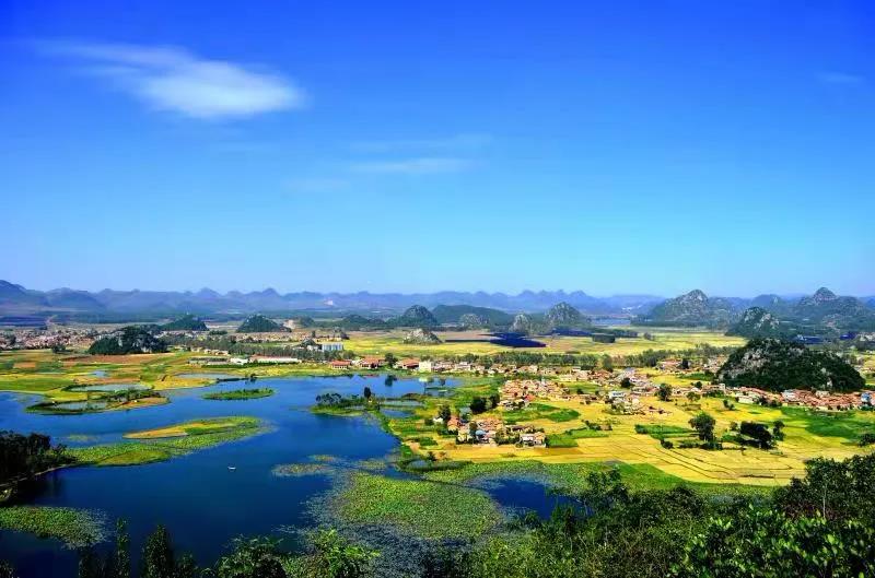 这里依然保持着原生态的美景,山水相间的喀斯特地貌,遗世独立的田园风光,以及惊艳的桃源与荷塘,是云南最值得去的地方之一。