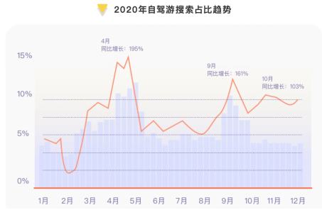报告显示,2020年,国内自驾游热度在疫情防控形势取得阶段性胜利后,出现了明显的复苏迹象,并在清明、“五一”、暑期和“十一”迎来了多个出游高峰期。