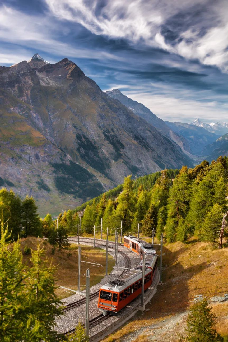 戈尔内格拉特铁路(Gornergrat Bahn)串联起从采尔马特到戈尔内格拉特(Gornergrat)的风景,一路上可以欣赏马特宏峰最壮丽景色,穿越高山花园,看见冰川、遇见羊群,走近神秘的山脉和冰川世界。