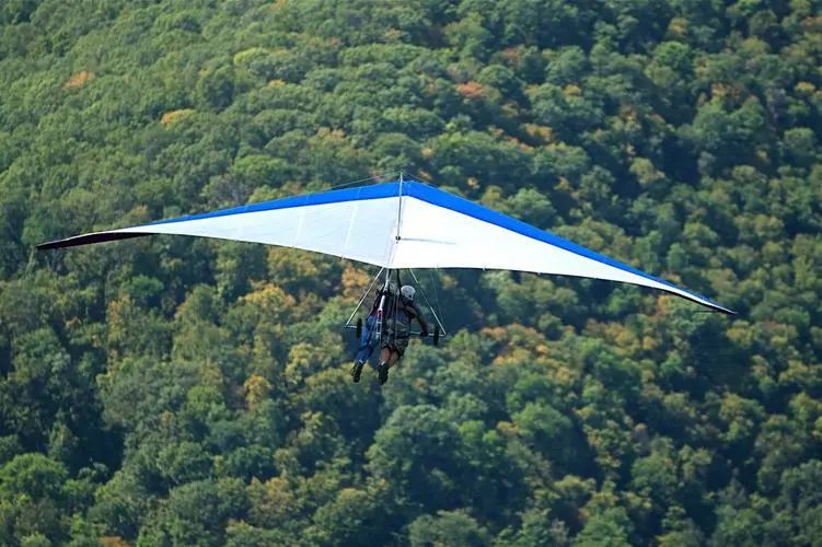 它构造简单、安全易学,只要有合适的山坡、逆风跑5-6步,即可翱翔天空。当它与空气做相对运动时,由于空气的作用,在伞翼上产生空气动力(升力和阻力),因而能载人升空进行滑翔飞行。