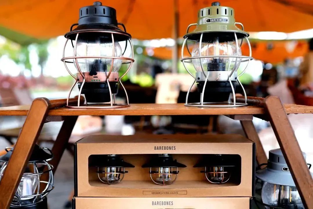 帐篷灯、营地灯、氛围灯、手电筒、帐篷串灯是夜晚的气氛神器。如果有条件的话,可以选择汽灯,相较起LED灯,它更能营造出温馨的氛围,在秋冬时期使用还能取暖。