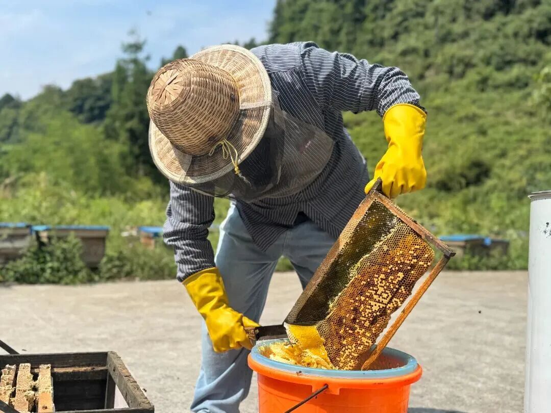 贵州高山的秋天, 野桂花、五倍子花还在开, 蜜蜂采这些花酿的蜜, 比春蜜更稠、更甜 早上冲杯温水, 喝着喉咙润润的, 胃里也暖暖的。蒸山药、煮红薯时淋一勺, 甜得不齁人,还带着山花的清香味。 冬天煮火锅蘸着吃, 解辣又暖胃。 其实山地的秋物产,全靠“赶趟儿” 鲜笋赶晨露,野菌赶秋雨, 板栗赶霜降前。