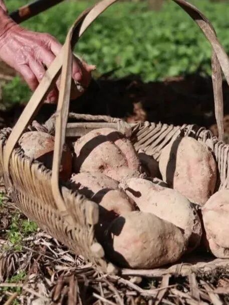 黄山脚下的坡地里, 红心山芋刚挖出来还沾着泥 — —掰开一看,肉是橙红色的, 蒸软后用勺子挖着吃, 甜得流汁,一点不噎人。烤着吃更上头, 表皮烤得焦脆, 里面的肉糯叽叽的, 凉了也不硬。