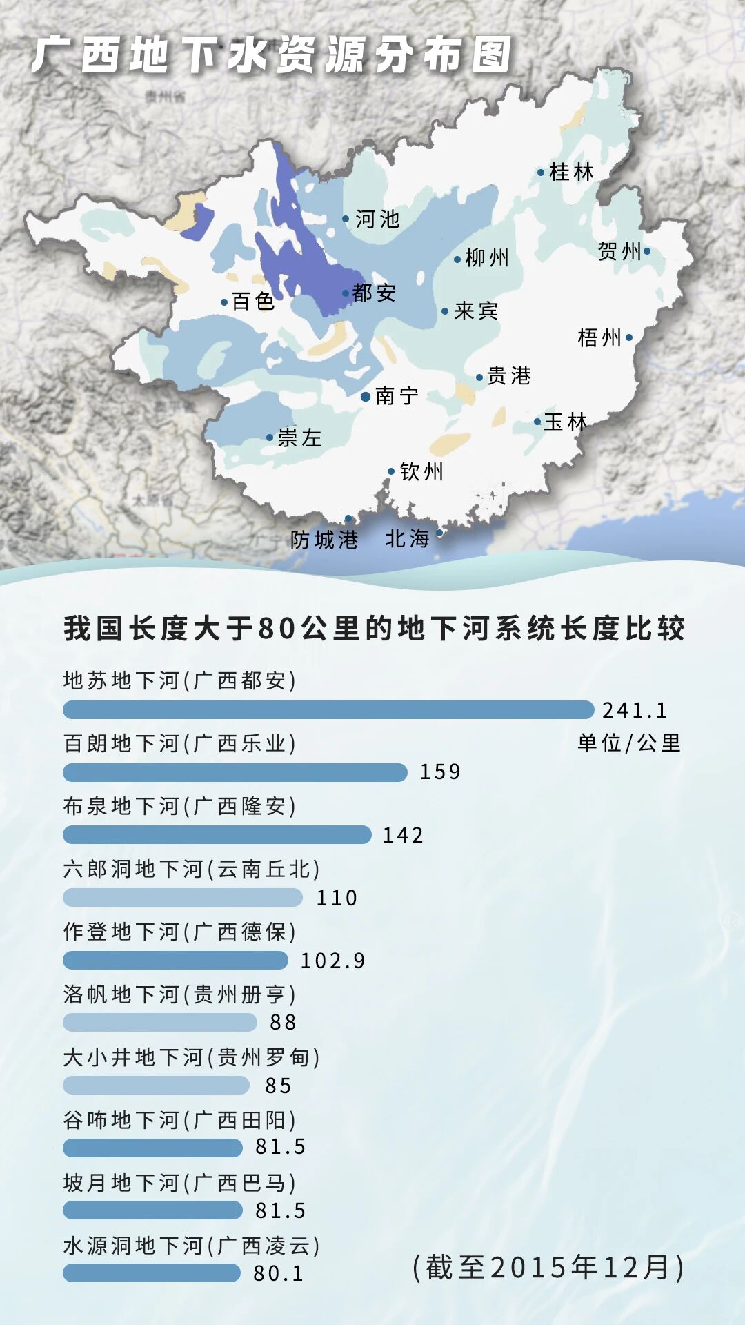 广西的地质条件,本就为地下河的发育提供了“先天优势”:这里接近一半的面积都是碳酸岩,这种可溶性岩石为大地埋下了“可雕琢”的基底,经过长期水流侵蚀,岩石内部逐渐形成缝隙与空洞,成了地下河流动的天然通道。而广西的地下河规模,更是撑起了“雕刻师”的底气,根据《广西通志・自然地理志》记载,广西有593条主干流长度超过2公里的独立地下暗河,还有317处岩溶大泉,所有暗河管道的总长度超过1万公里,像一张庞大的“地下水网”层层包裹着这片土地。