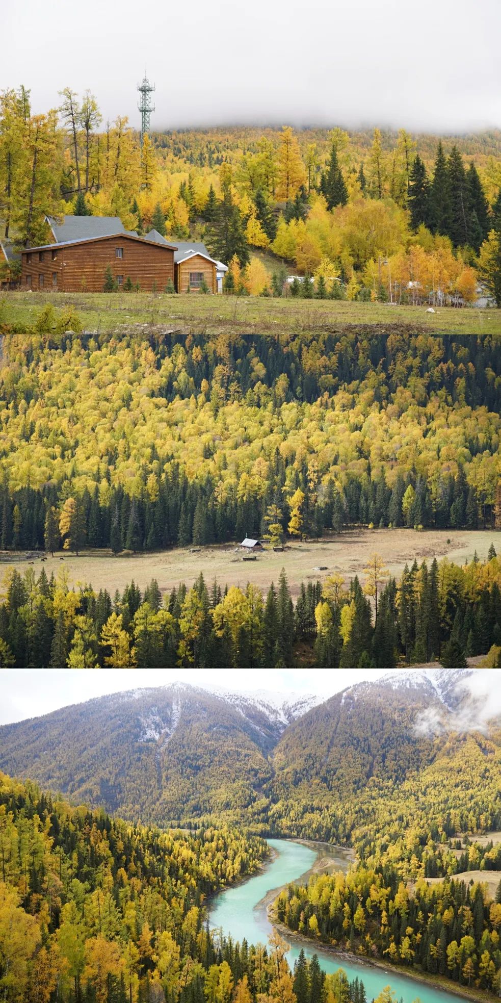 咸香的奶茶、安静的村庄、静静流淌的河水、翻涌的云雾、蜿蜒曲折的道路、时有时无的太阳、远山彩林和蓝绿色的湖水、马头琴悠扬的乐声......都是关于喀纳斯。