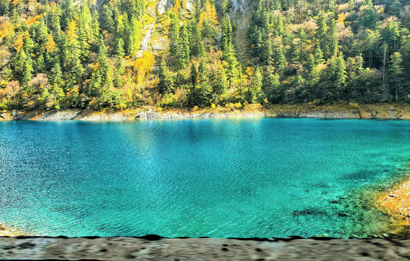午后,我们转往日则沟。时间已显仓促,箭竹海是我们唯一来得及深度游览的站点。电影《英雄》中的打斗场景曾在此取景,而真实的它比银幕上更加灵动。箭竹丛生,湖面如缎,偶有野鸭划过,漾开一圈圈涟漪。我们沿着湖畔行走,脚步不自觉地放轻,仿佛怕惊扰了这片宁静的梦境。剩下的珍珠滩、五花海、熊猫海,我们只能在观光车上隔窗遥望,那些惊鸿一瞥的碧蓝与翠绿,成了心中种下的“再来一次”的种子。