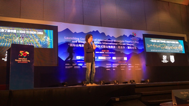 图@2019年5月29日,国民公路G318文化推广发起人李克崎在加德满都发布“此生必驾318”IP