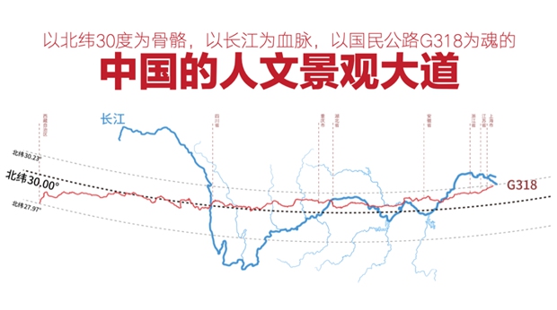 我们也很高兴在2019年5月29日首个国际山地旅游日在尼泊尔加德满都举办的国际论坛中,在这个国际舞台上首度完整亮相,并正式发布了“此生必驾318”这一公路IP,它是一条以318国道为主线覆盖周边一定范围内的泛318的公路旅行带,但当时并没有一个非常明确的属性和范围。随着这几年对318的深究和探索,重新定义“318”为一条以北纬30度为骨骼、以长江流域为血脉、国民公路G318为魂的“中国的人文景观大道”!