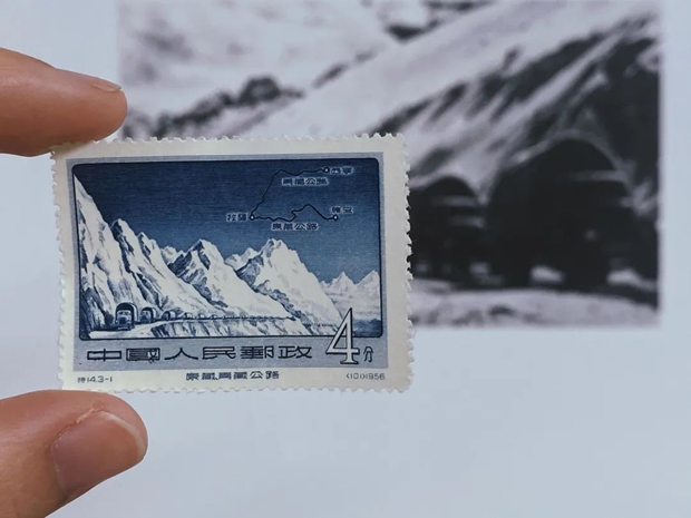 图@新中国成立后发行的第一套公路建设邮票——《特14 康藏青藏公路》右上部康藏、青藏公路路线图中,康藏公路的起点标注为“雅安”