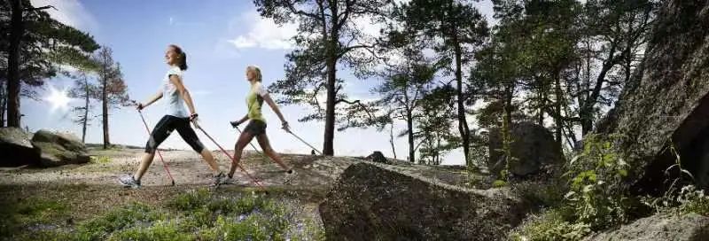 肖刚:持杖健走也叫越野行走,也叫北欧式健走。之所以叫做越野行走,因为它是由越野滑雪运动演变过来的;之所以叫做北欧式健走,是因为他起源于北欧芬兰。这项运动最早是越野滑雪运动员在夏天的时候出于训练的需要而衍生出来的。夏天滑雪运动员仍然需要进行训练,但是没有雪,怎么办呢?他们就脚下穿着轮滑鞋,手上拿着滑雪杖,在马路上进行一些蹲滑的练习。后来他们对这项运动的训练方式做了改进,不穿轮滑鞋,变成一般的运动鞋,手上不拿滑雪杖,拿一种专门制造的健走杖,或者叫行走杖来进行锻炼。