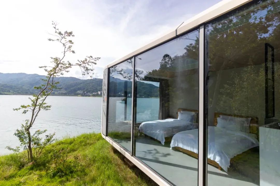 孙晓锋:微宿产品能够整体移植、快速安装,生产后,在地面两小时以内能安装能使用,全景设计是产品自带的特点。微宿重新定义了户外高端营地,从理念上超越了以木屋、房车、集装箱民宿为代表的传统营地范式。