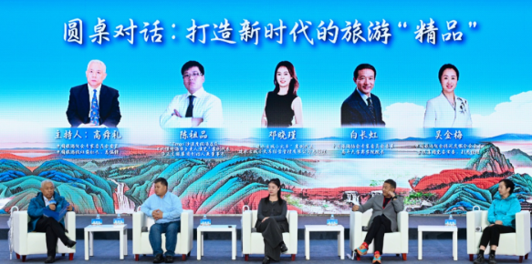 圆桌对话“打造新时代的旅游‘精品’”,由中国旅游协会专家委员会委员,中国旅游报社前社长、总编辑高舜礼主持。华正文旅集团创始人兼董事长陈祖品;建水古城小火车经营管理有限公司总经理邓晓瑾;中国旅游协会专家委员会委员、南开大学商学院院长白长虹,中国旅游协会休闲度假分会会长,首旅集团党委常委、副总经理吴金梅参加对话。对建水古城小火车,华正文旅的《大漠升海市》进行案例解读,以“精品”为题,对企业探索新时代发展,提出思考和建议。