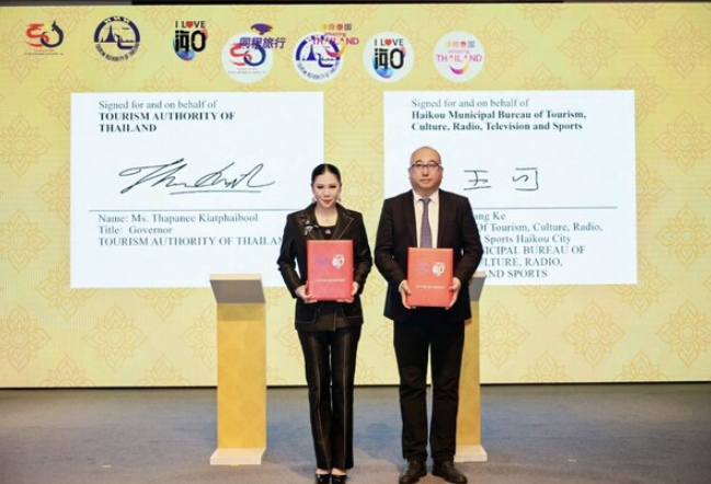 近日,泰国国家旅游局(TAT)与海口市旅游和文化广电体育局、同程旅行在中国海口正式签署三方旅游合作意向书。此次合作旨在整合政府与市场资源,深化中泰旅游协作,提升市场联动效应,共同推动高质量中国游客赴泰旅游,促进两国“双向旅游”合作迈向更高水平。
