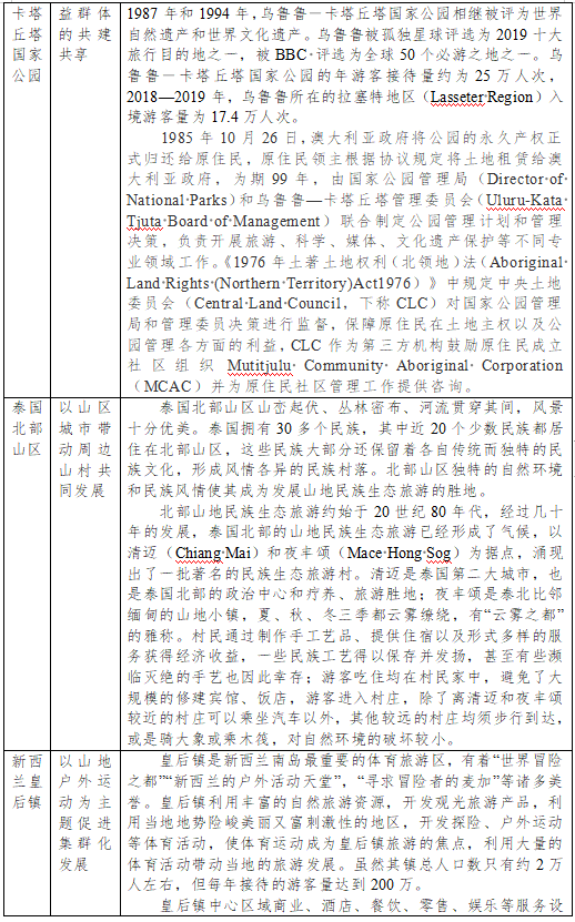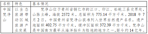 在RCEP的网络上,共有158项世界遗产,占世界遗产总数的13.7%。著名的旅游目的地如中国的泰山和梵净山、老挝的琅勃拉邦、越南的下龙湾、柬埔寨的吴哥窟、缅甸的蒲甘、马来西亚的马六甲名城、印度尼西亚的科莫多国家公园、澳大利亚的卡卡杜国家公园、新西兰的次南极区群岛等等,都被同一张旅游网络织在一起。在这个网络上,已逐渐形成以46项山地世界遗产为主体的世界级山地旅游目的地,形成各具特色的集群化山地旅游产业发展模式。典型代表如表4-1所示。