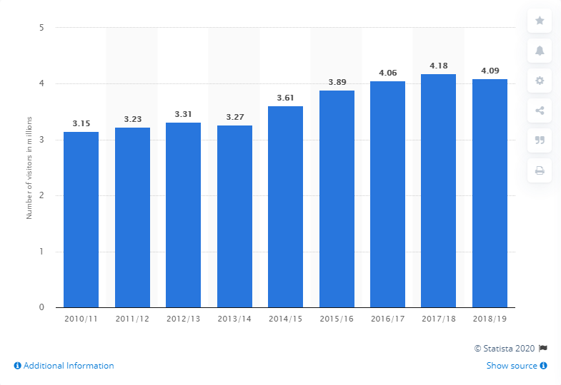 班夫国家公园游客人数统计2010-2018