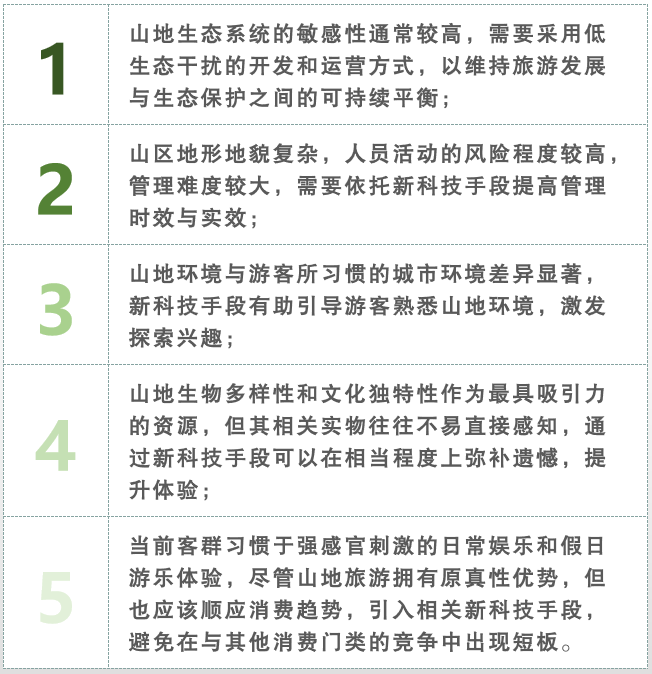 从某种意义上讲,山地旅游是最需要且最适合及时运用新科技的旅游业细分门类之一,其必要性和紧迫性甚至不亚于主题公园等其他旅游业细分门类。