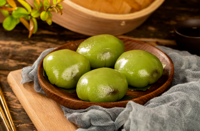 If wild vegetables are spring's calling card, then the soft, glutinous green rice balls (Qingtuan), as green as distant mountain peaks, also carry the romantic, fresh taste of spring. Taking a bite of spring is the only way not to disappoint the season. Typically, fresh green mugwort is gathered in spring, pounded for juice, thoroughly mixed with glutinous rice flour, wrapped with ample filling, and steamed. These small balls are also a traditional Qingming Festival food, bearing deep cultural heritage. Their history traces back to the Northern and Southern Dynasties, when people used glutinous rice dough to wrap wild greens as a seasonal offering to ancestors and nature spirits. Today, Qingtuan have become distinctive local delicacies. In Jiangnan, they are known for their smooth texture and exquisite appearance; in Fujian and Guangdong, they incorporate more local ingredients and fillings.