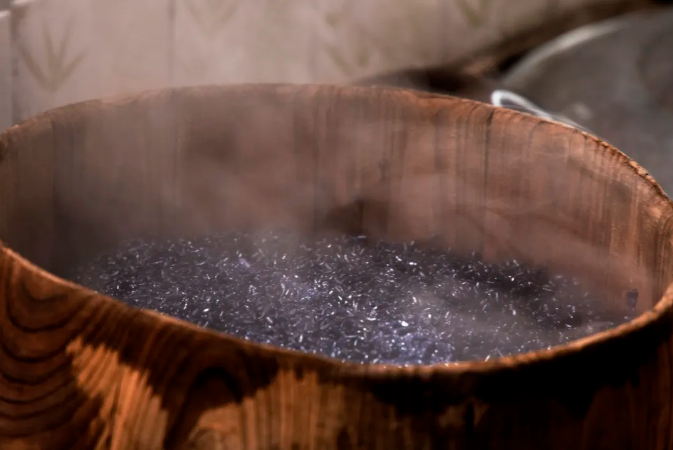 Spring is colorful—can black be excluded? Then we must mention Jiangnan's Black Rice (Wunianfan). Also called black rice, originally a folk food, it dates back to the Tang Dynasty. In rural areas like Yixing, Liyang, Jintan in Jiangsu, and southern Anhui, it's customary for many households to cook black rice using leaves of the black rice tree on the eighth day of the fourth lunar month. This purple-black glutinous rice is made by boiling leaves of the Vaccinium bracteatum (south candle tree) for a broth, soaking glutinous rice in it for half a day, then steaming in a wooden steamer. The resulting rice is glossy and fragrant. Eating it is believed to dispel wind, detoxify, and prevent insect bites.