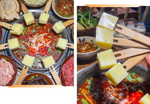 Shrimp paste hotpot is often called the "river snail rice noodle soup" of Guizhou hotpots, known for its distinctive fermented shrimp flavor. The shrimp paste is made from local fresh river shrimp through a multi-step fermentation process, resulting in a rich and intense taste. Shrimp paste beef hotpot combines the umami of shrimp, the tanginess of vinegar, and the spiciness of chili peppers. This sour-spicy flavor pairs perfectly with the hearty texture of beef, while fresh mint adds a refreshing aroma. Together, they stimulate the appetite and leave diners craving more.