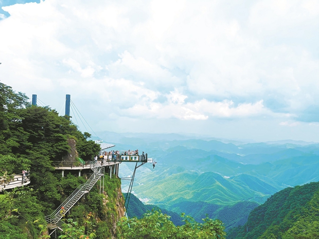 Escalators built into the mountainside give hikers a "no-sweat ascent" choice in the Shenxianju scenic area in Taizhou, Zhejiang province. [Photo provided to China Daily]