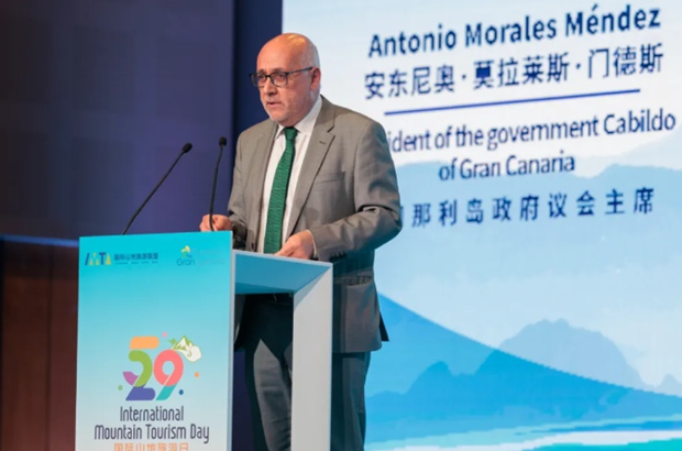 On May 29, the"International Mountain Tourism Day 2025" Theme Events kicked off on Gran Canaria, Spain. With the theme "Embracing Mountains and Seas, Coexisting with Cultures — Mountain Tourism and Cultural Inclusiveness for the Future," the event brought together representatives from international organizations, government officials, industry leaders, experts, scholars, and media worldwide to explore inclusive collaboration and shared development in global mountain tourism. The program included an opening ceremony, thematic forums, mountain cultural exchange sessions, a China-Spain cultural tourism exhibition, and the "Gran Canaria Night" welcome dinner. Participants engaged in diverse formats to share advanced concepts, discuss cutting-edge issues, and deepen practical cooperation. At the opening ceremony, Mr. Miguel Sanz, General Director of Turespaña, delivered a video speech, while -Mr. Antonio Morales Méndez, President of the Government of Gran Canaria, Spain, gave a welcome address.