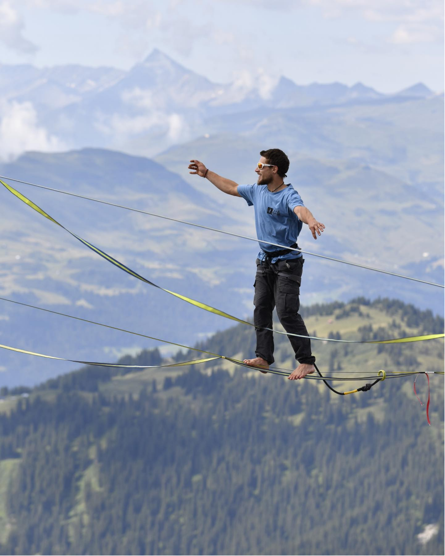 A flat belt, which sets up valleys and rivers, carries a belief. It is a game for the brave, a process of overcoming fear, constantly challenging balance and nature, and a new and unknown way of walking.
