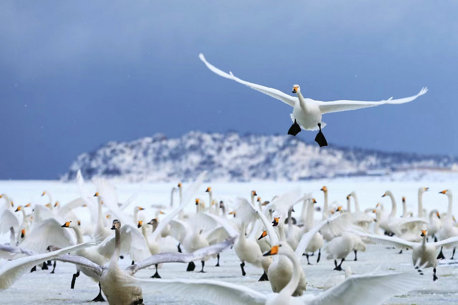 Swans in Yandunjiao village, Shandong province. [Photo provided to China Daily]