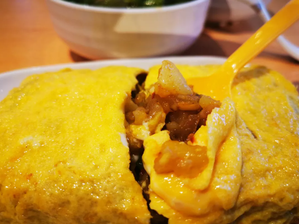 Egg-wrapped potatoes feature mashed potatoes enveloped in a golden egg wrap. One bite combines the aroma of eggs with the savory taste of potatoes, making it irresistible! The mashed potatoes are mixed with ingredients like zhe'ergen (Houttuynia cordata), crispy pork bits, and scallions. If you can’t stand the smell of zhe'ergen, be sure to mention it in advance.