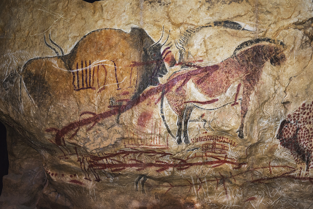An undated photo shows the ancient paintings of the Lascaux Cave in France. /CFP