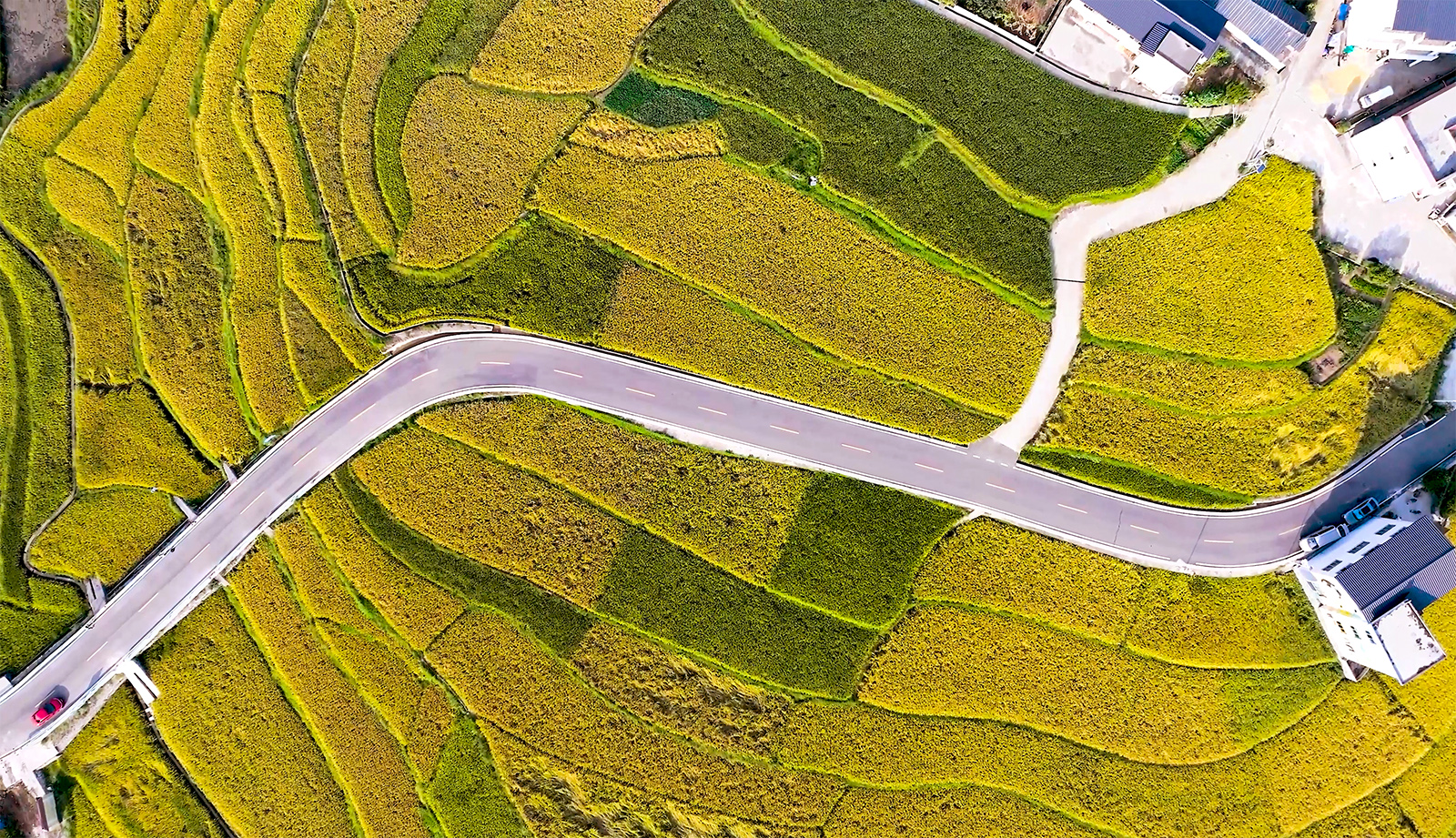 An expansive vista of golden terraced fields is seen at Guojiawan Village in Yuping Dong Autonomous County, Guizhou Province. /Provided to CGTN