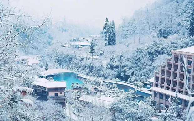 海螺沟一到12月就开始美得不像话,在美如仙境的原始森林里,可以一边泡着温泉,一边享受雪景,若是足够幸运遇到降雪,还可以在热乎乎的温泉中欣赏雪花飞舞。