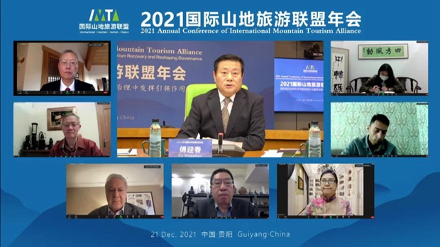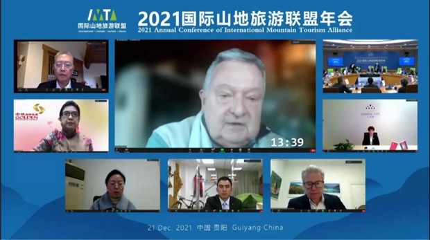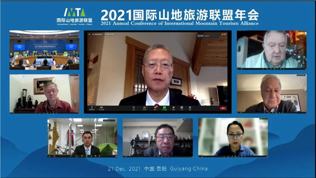 12月21日,2021国际山地旅游联盟年会在“云端”盛大启幕。在全球疫情防控收紧的特殊背景下,本届年会通过实时视频连线方式举办,主会场设在联盟贵阳总部。国际组织、机构、联盟会员和业界专家、企业家聚集“云端”,包括国内会员、国际组织、业界专家、媒体等约50名代表在主会场出席会议。年会主题为“国际组织如何在全球旅游复苏与重塑治理中发挥引领作用”。