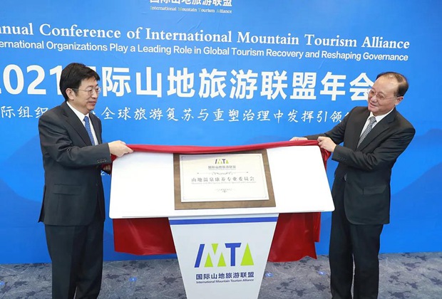 年会上,国际山地旅游联盟山地温泉康养专业委员会揭牌,专业委员会的成立将促进山地温泉资源有效利用和可持续开发,加强山地温泉康养价值研究和探索,为消费者提供更多的优质山地旅游产品。