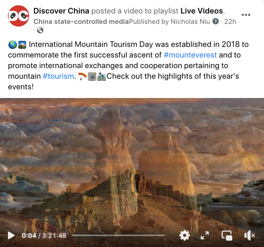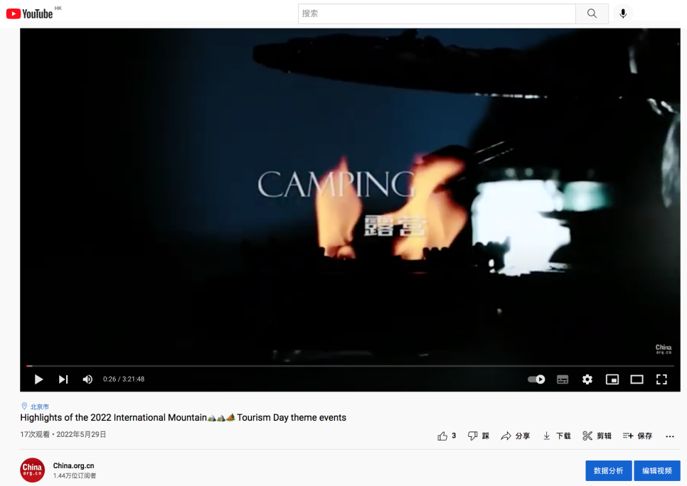 “探索中国”(Discover China)的脸书(Facebook)平台以及优兔(YouTube)账号进行了直播及视频推送,截至6月2日17时,活动在海外触及人数已超过105万,全球山地旅游爱好者们共享山地美好生活。