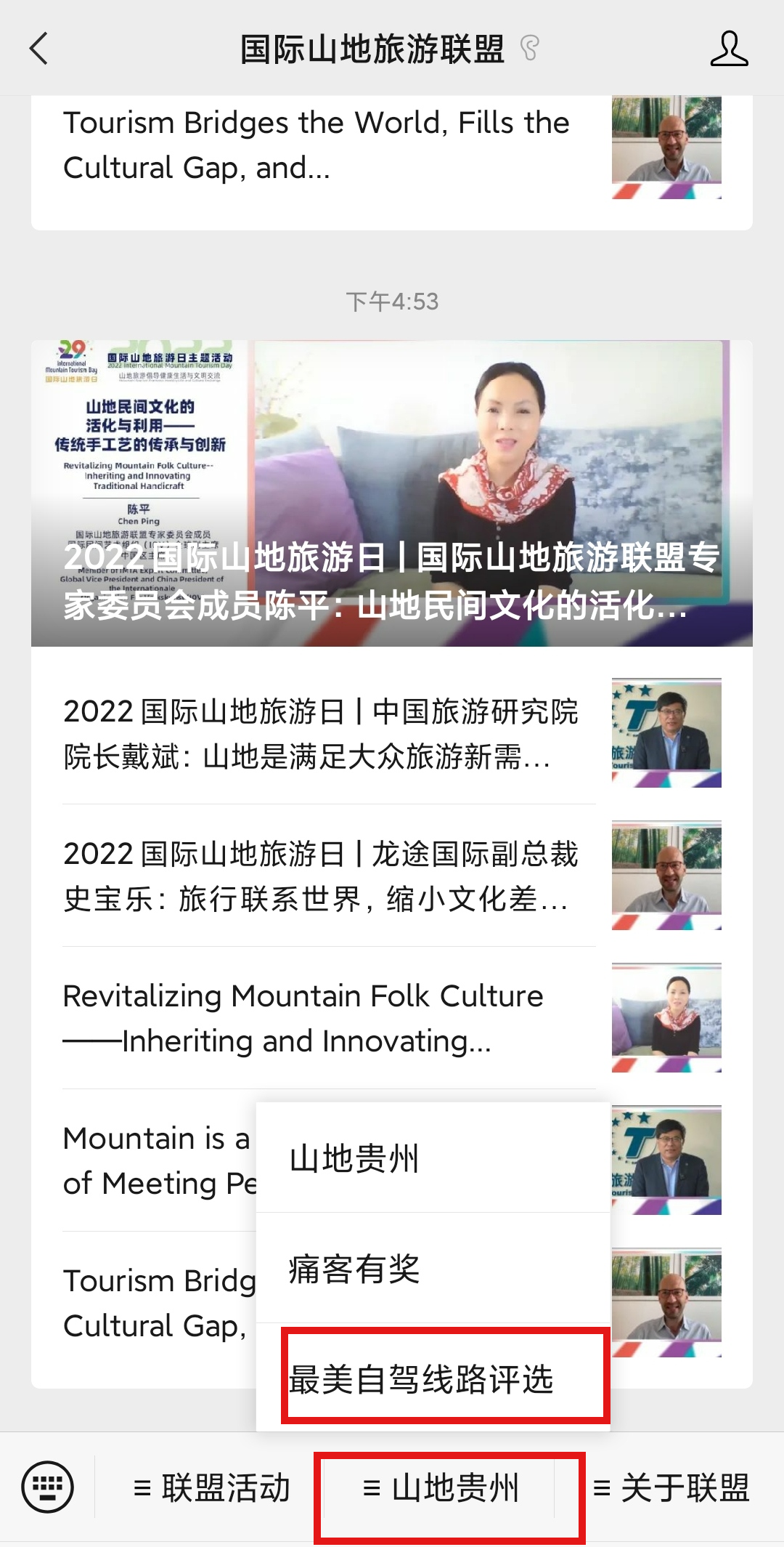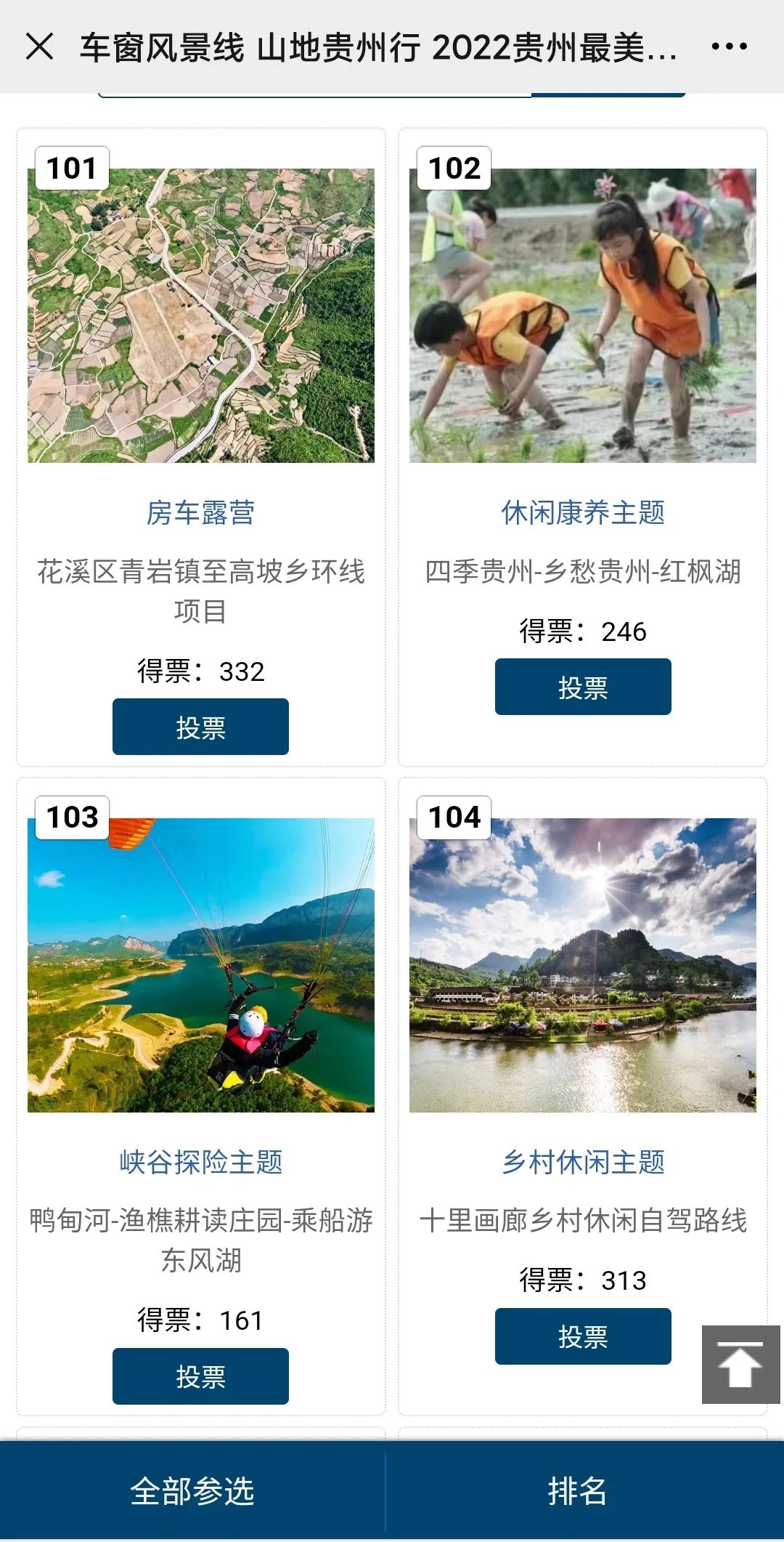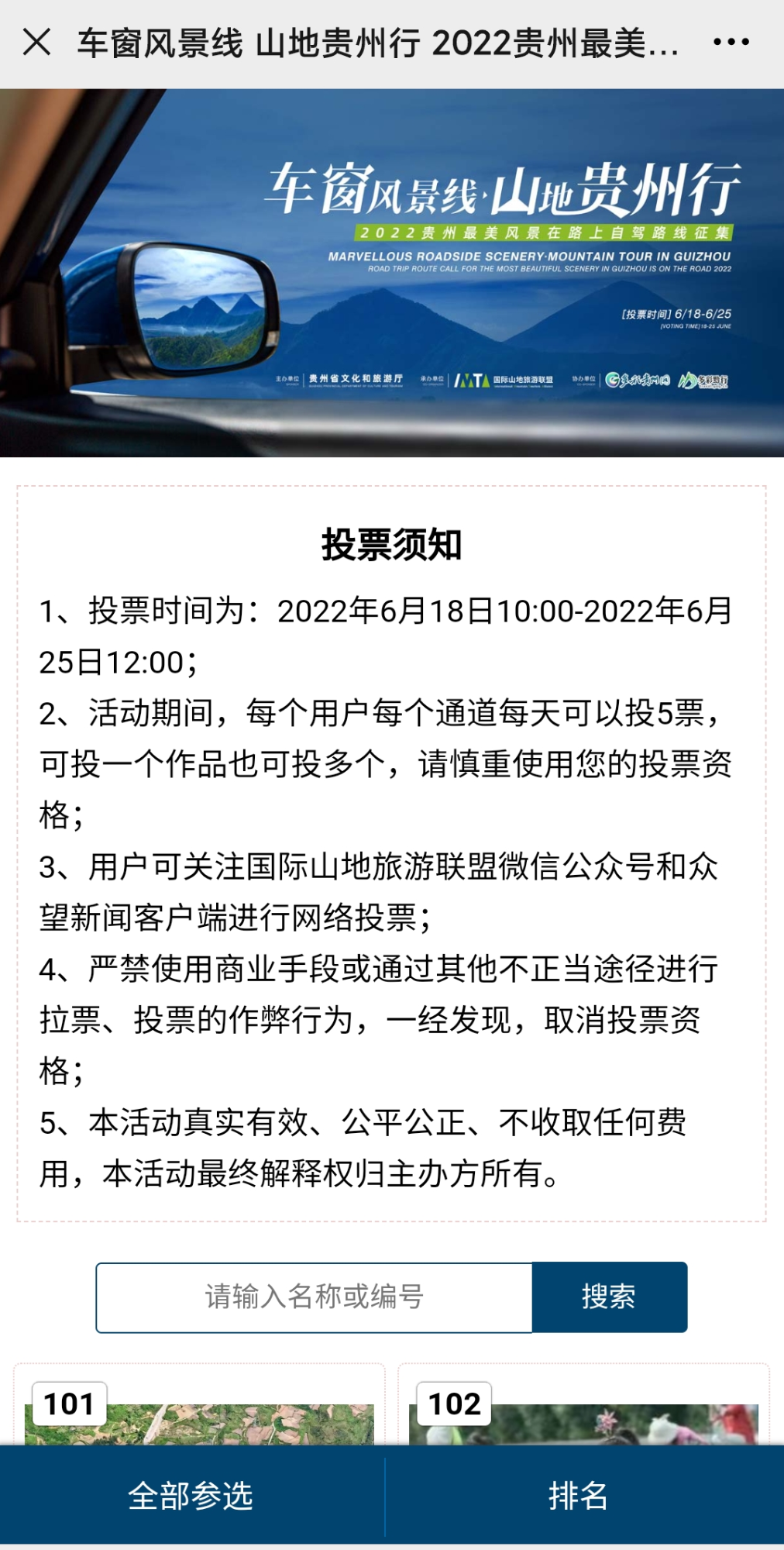 点击菜单栏【山地贵州】→【最美自驾路线评选】