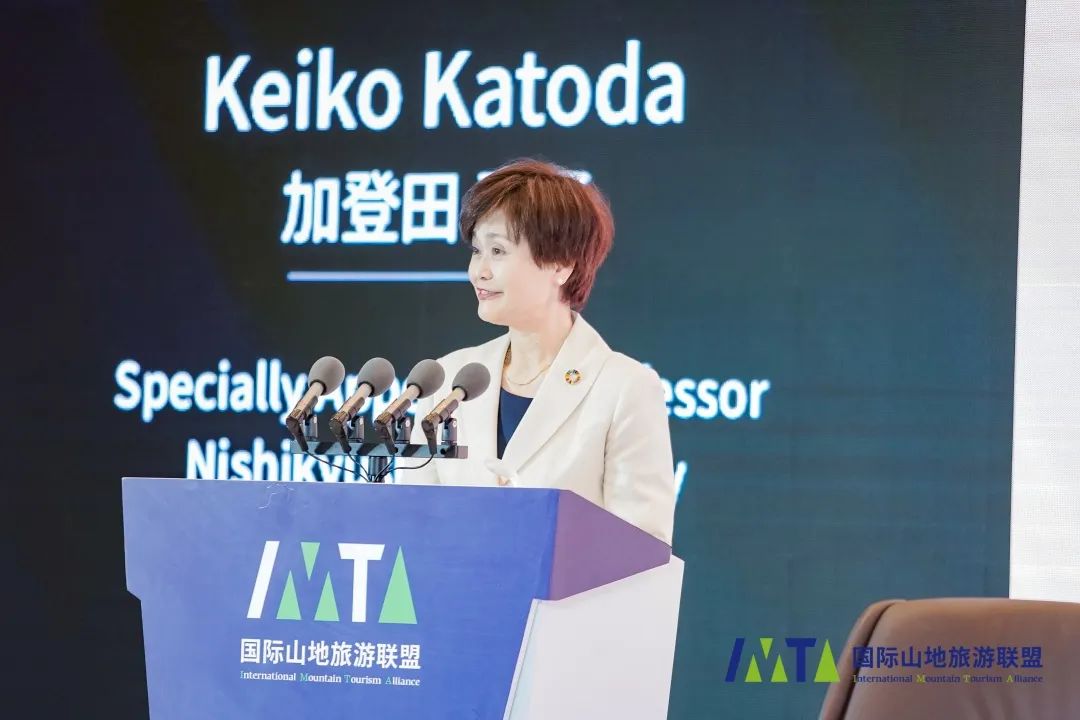 日本西九州大学健康福址学部社会福祉学科特任教授加登田惠子(Keiko Katoda)则从“福祉文化性山地旅游的潜力”角度,分析山地旅游结合福祉文化诞生新业态的充分可能性。她在演讲中分享了智障人士挑战徒步登上喜马拉雅山和打造无障碍温泉小镇的案例,两个与山地旅游相关的福祉文化活动,足以说明山地旅游实现“每个人都受到重视的时代”“保证文化生活的质量”“人类文化体验的共享”福祉文化的做法切实可行,且衍生出充满人文关怀的山地旅游新发展方向。