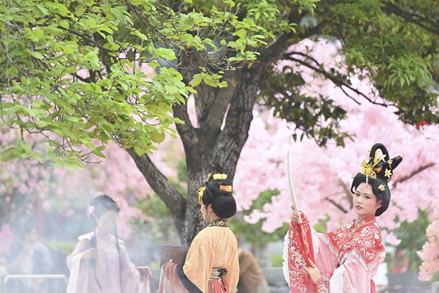 The annual "Chinese Style Cherry Blossom Festival" in Guangzhou, Guangdong, attracts many Hanfu enthusiasts. /CFP