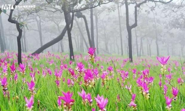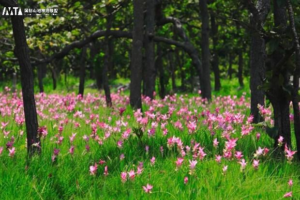 Pa Hin Ngam National Park, 300 kilometers northeast of Bangkok, covers 113 square kilometers and sees thousands of "Siamese tulips" bloom every year from April to July.