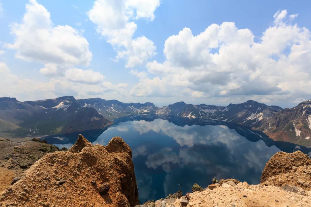 长白山位于吉林省东南部,是一座休眠火山。其主峰白头山多白色浮石与积雪,素有“千年积雪万年松,直上人间第一峰”的美誉。以天池为中心的长白山保护区是中国最大的自然保护区,具有较高的科研、保护和旅游价值,于1980年列为联合国教科文组织“人与生物圈”。